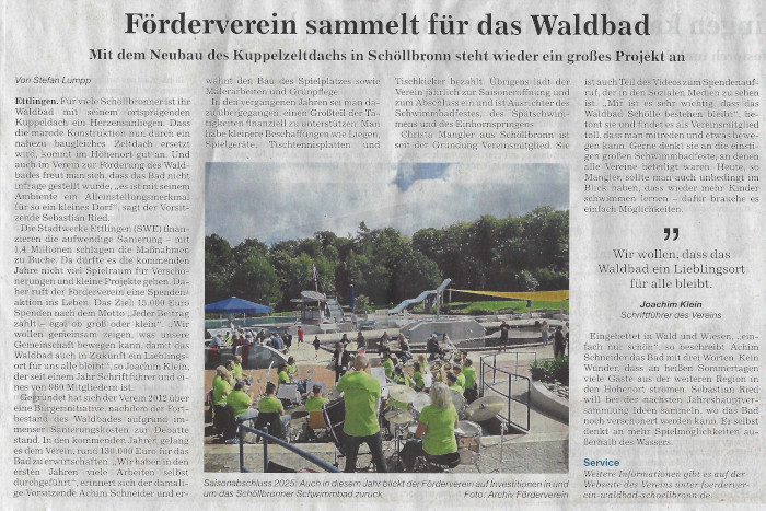 13. November 2025 BNN: Förderverein sammelt für das Waldbad BNN: 13. November 2025Förderverein sammelt für das Waldbad Originalgröße