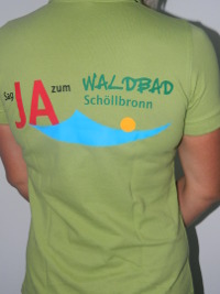 die grünen Shirts mit Vereinslogo und –motto „Ja zum Waldbad Schöllbronn“.