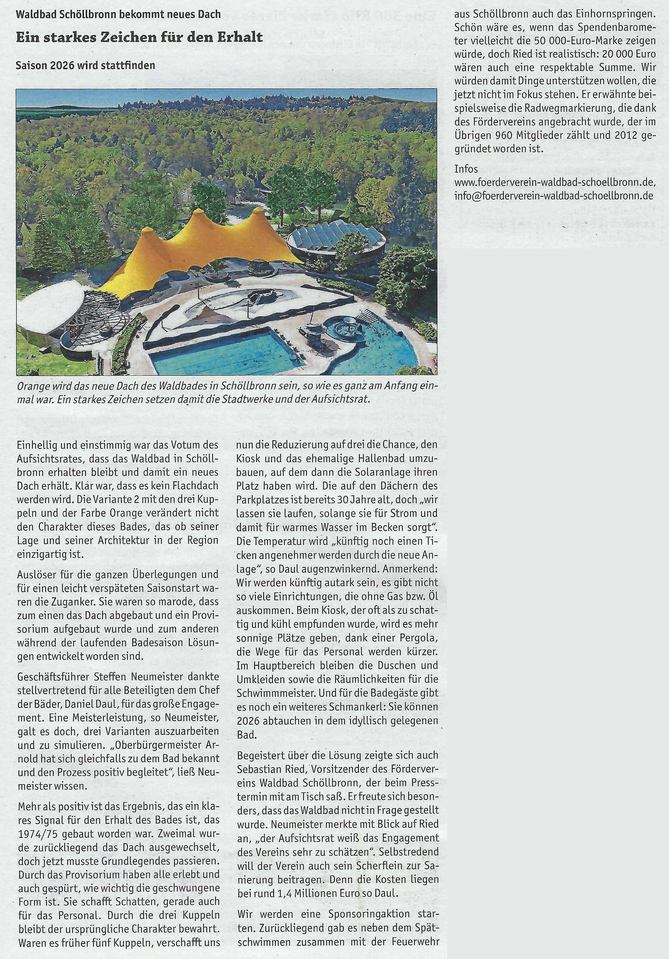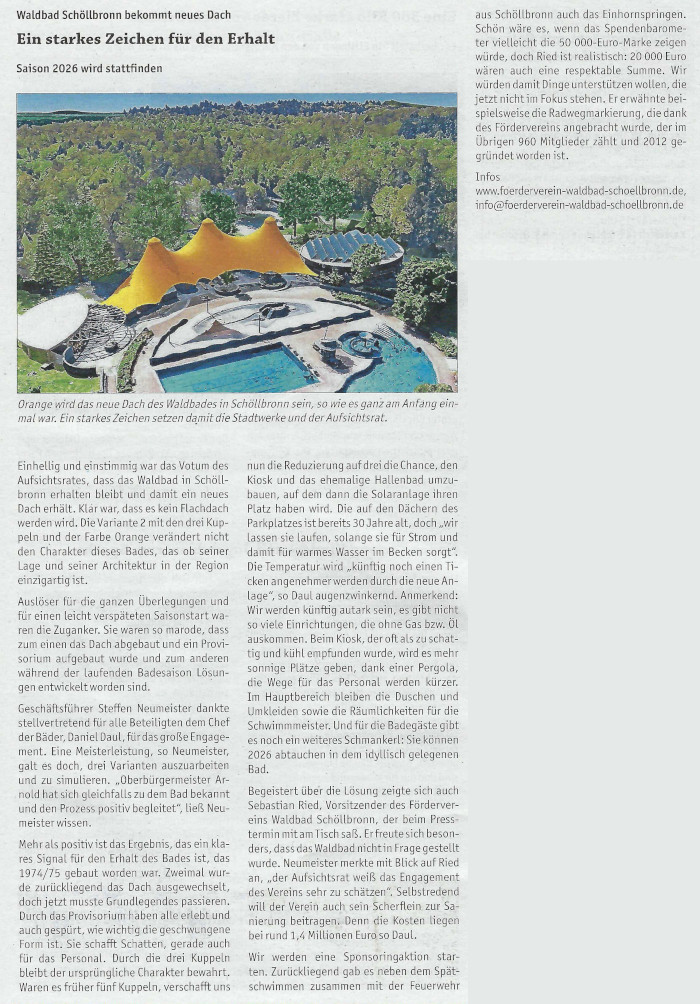 09. Oktober 2025 Amtsblatt: Waldbad Schöllbronn bekommt neues Dach