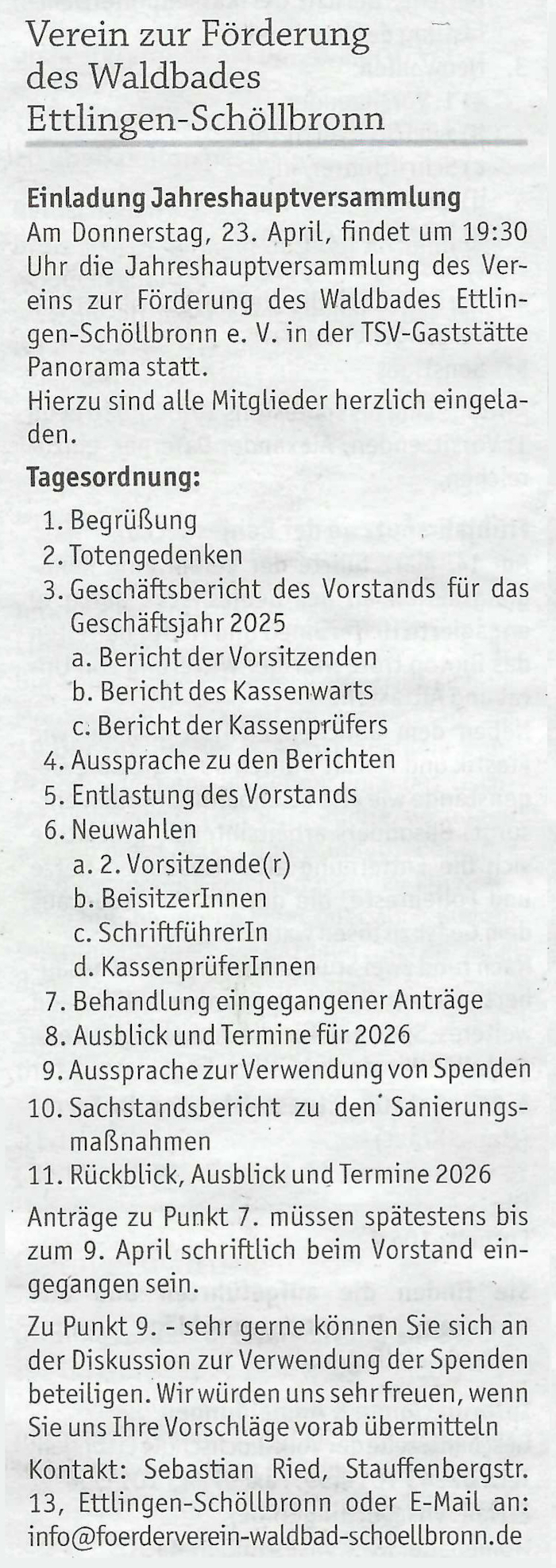 01. April 2026 Amtsblatt: Einladung Jahreshauptversammlung