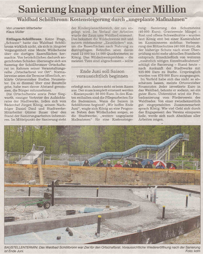29. April 2013 BNN: Sanierung knapp unter einer Million