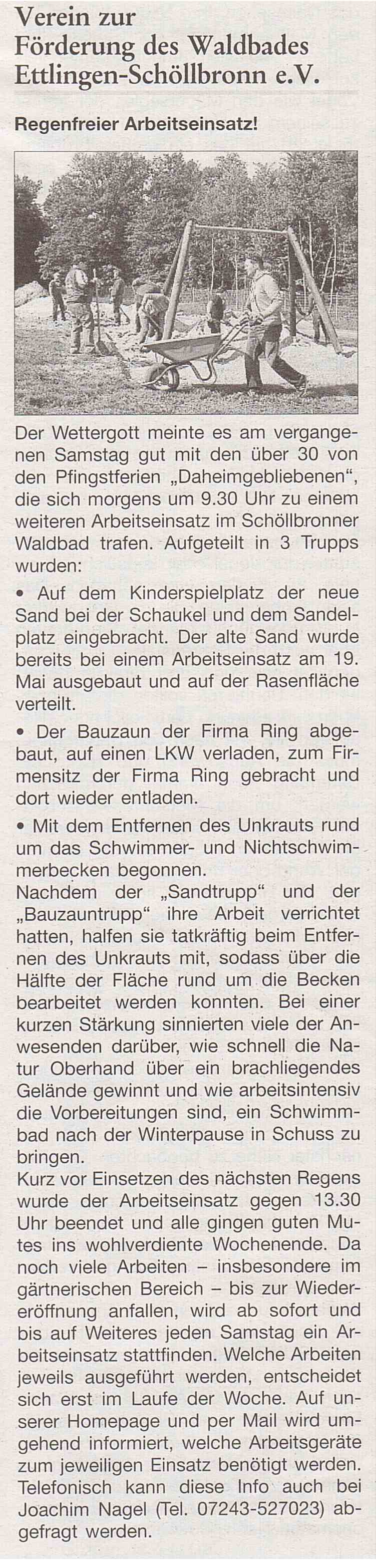 29. Mai 2013 Amtsblatt Ettlingen: Regenfreier Arbeitseinsatz