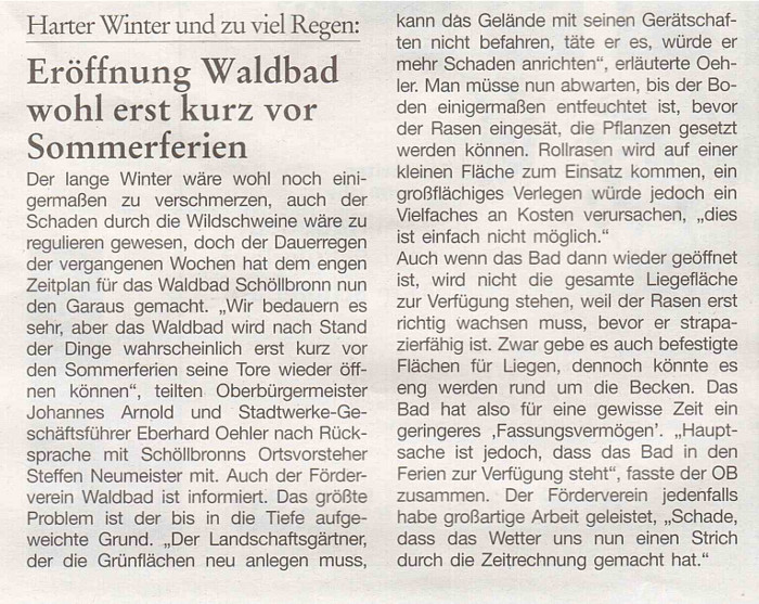 13. Juni 2013 Amtsblatt Ettlingen: Harter Winter und zu viel Regen