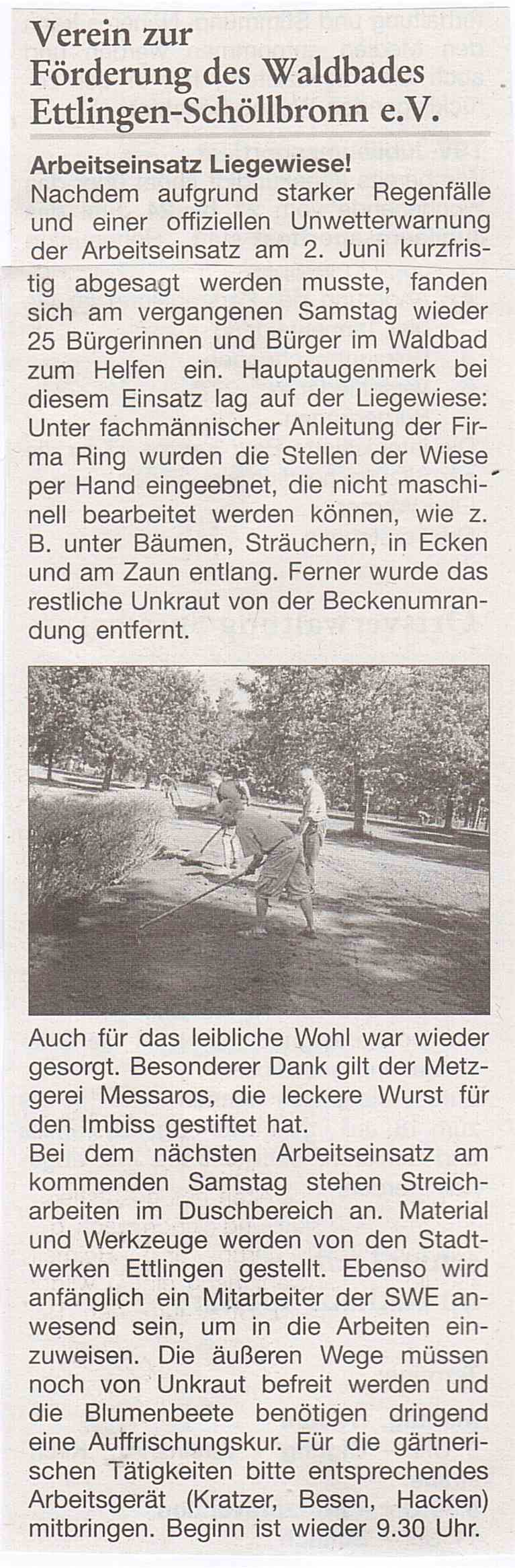 13. Juni 2013 Amtsblatt Ettlingen: Arbeitseinsatz Liegewiese!