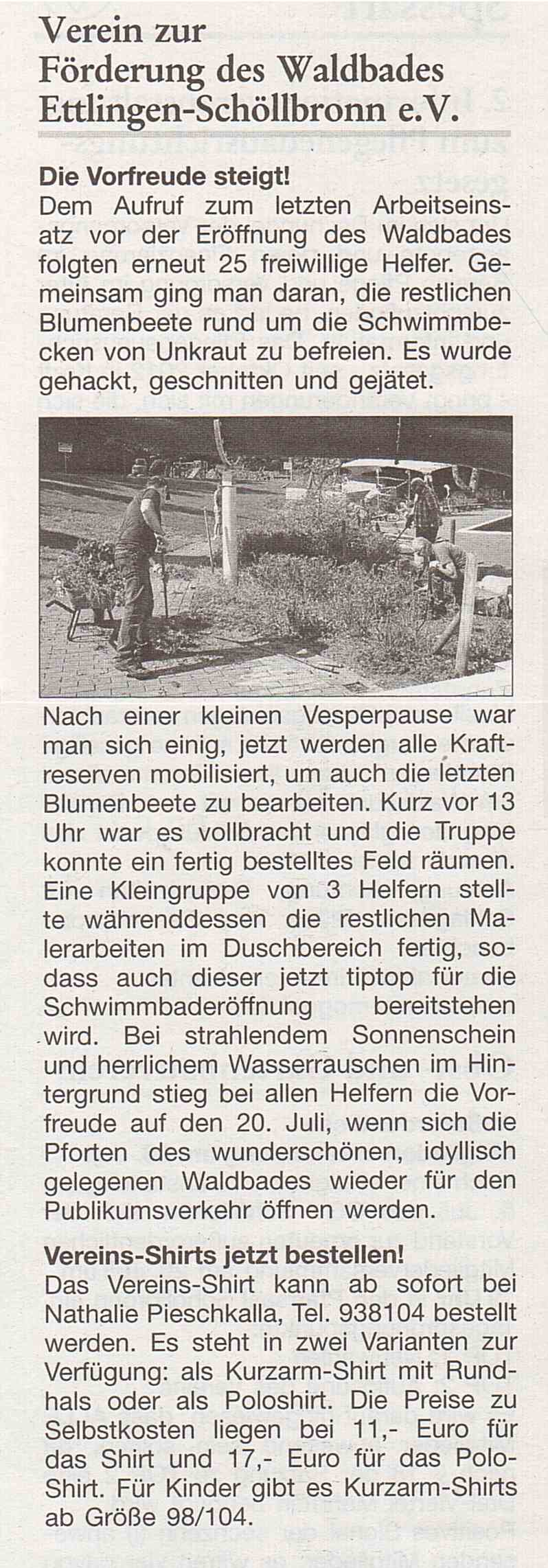 11. Juli 2013 Amtsblatt Ettlingen: Die Vorfreude steigt!