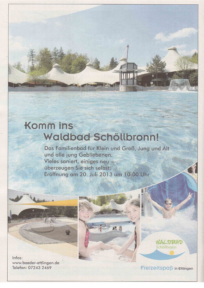 18. Juli 2013 Amtsblatt Ettlingen: Komm ins Waldbad Schöllbronn!