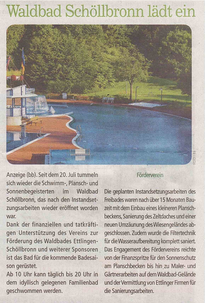 27. Juli 2013 Boulevard Baden: Waldbad Schöllbronn lädt ein
