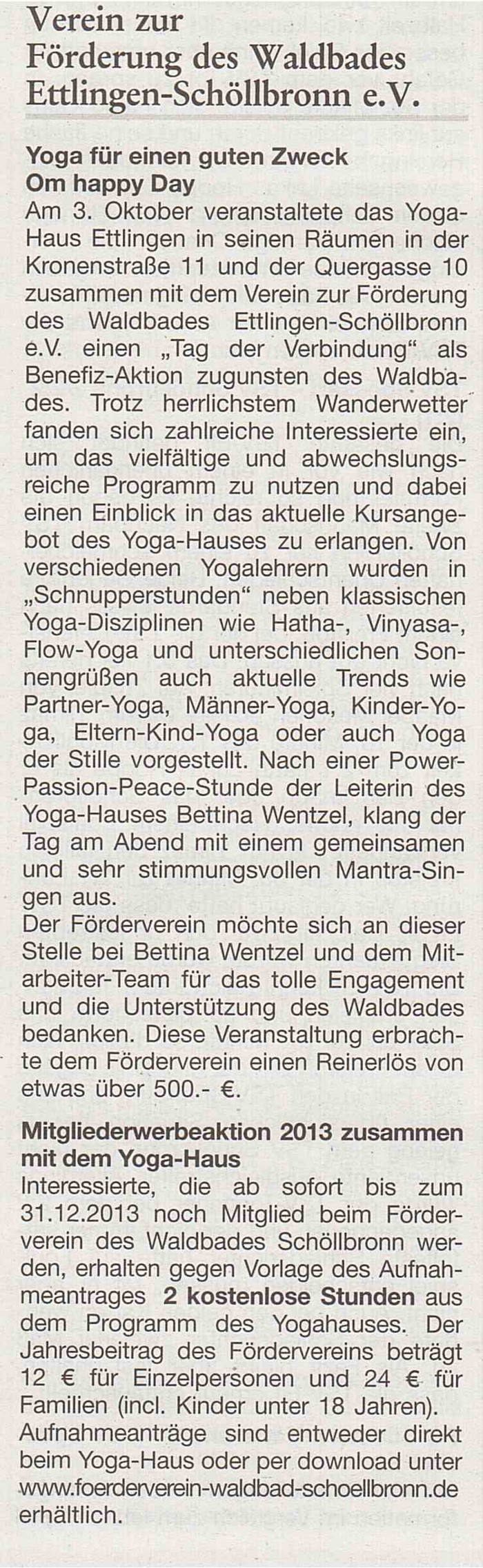 10. Oktober 2013 Amtsblatt Ettlingen: Yoga für einen guten Zweck