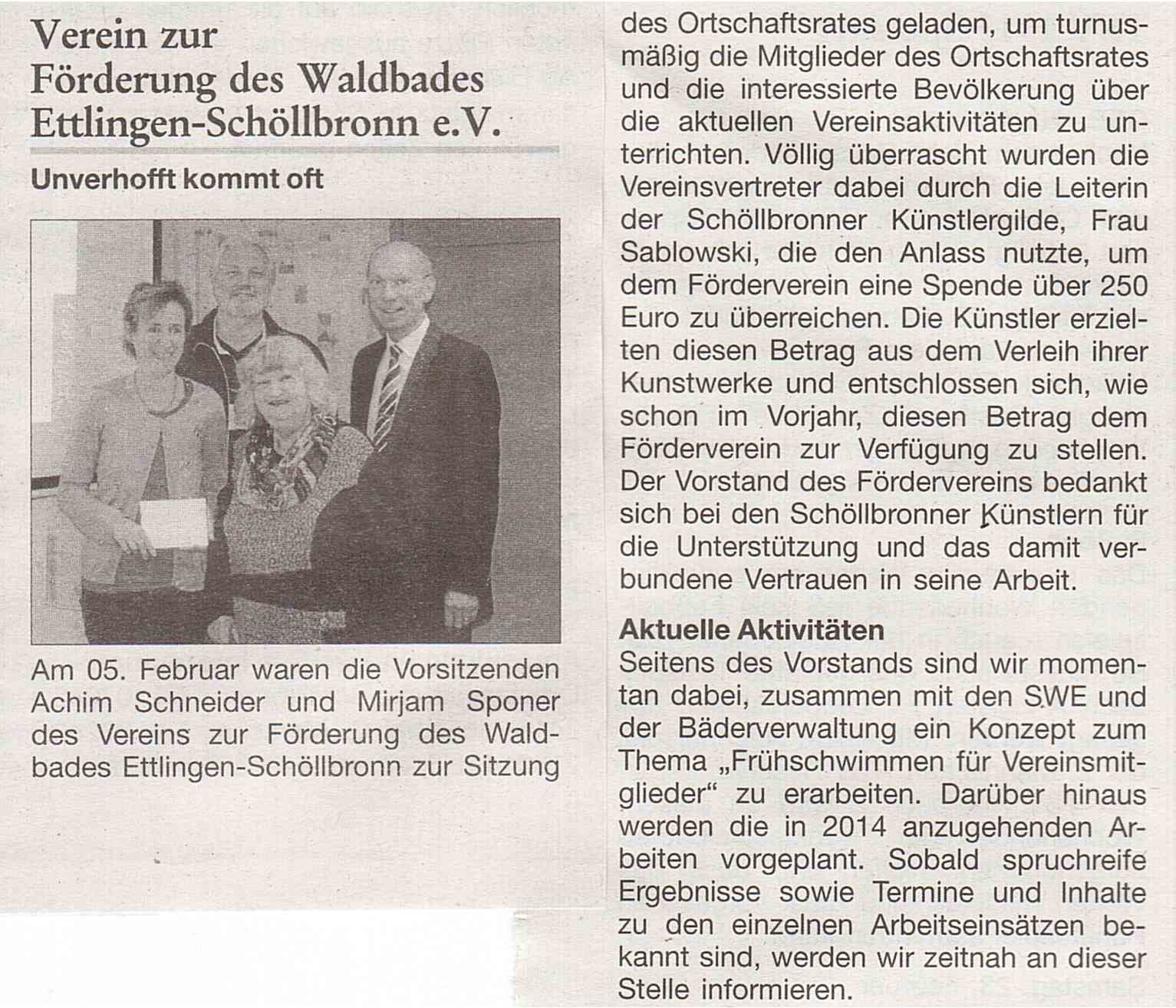 20. Februar 2014 Amtsblatt Ettlingen: Unverhofft kommt oft / Aktuelle Aktivitäten