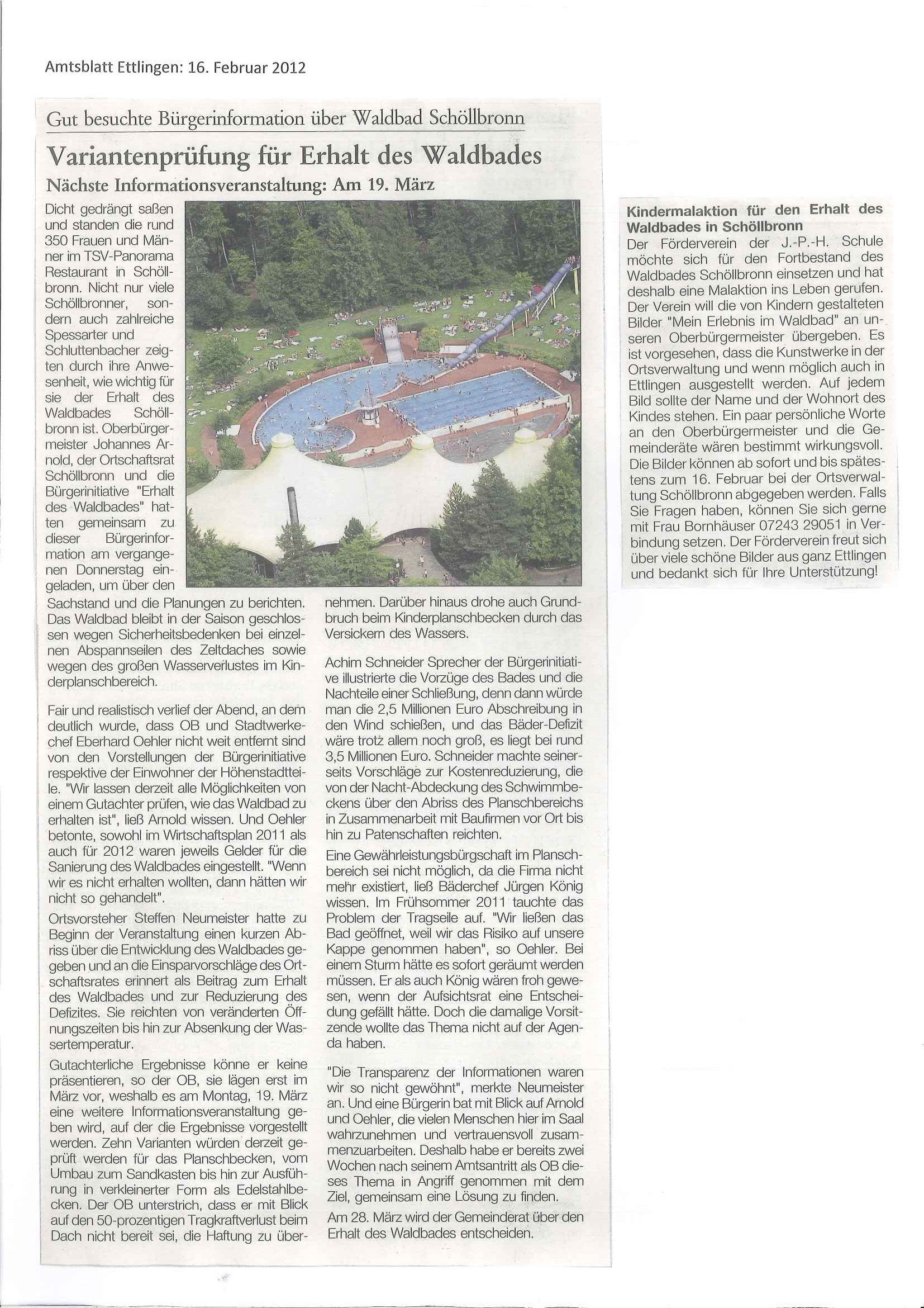 16. Februar 2012 Amtsblatt Ettlingen: Variantenprüfung für Erhalt des Waldbades