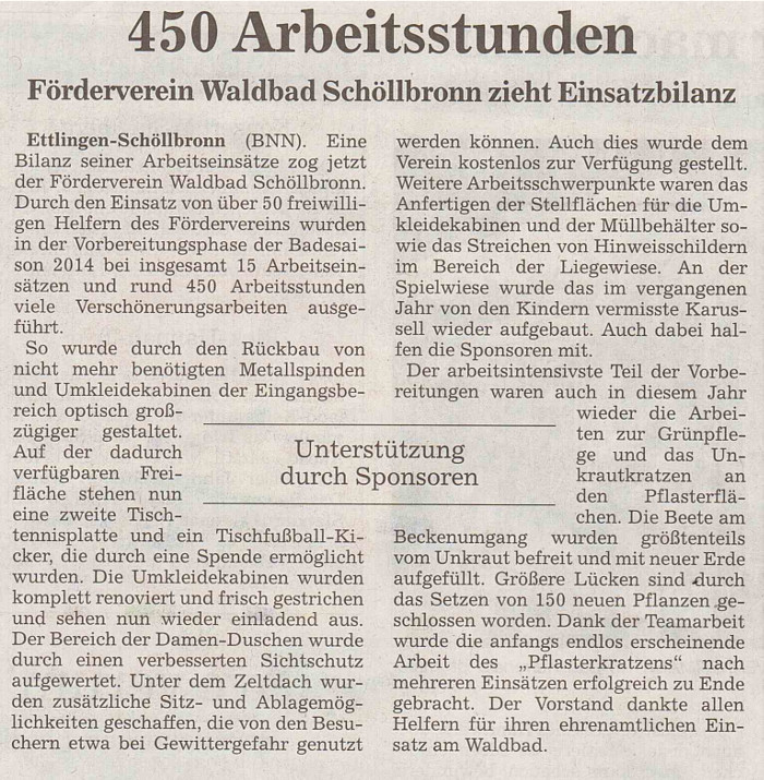 04. Juni 2014 BNN: 450 Arbeitsstunden