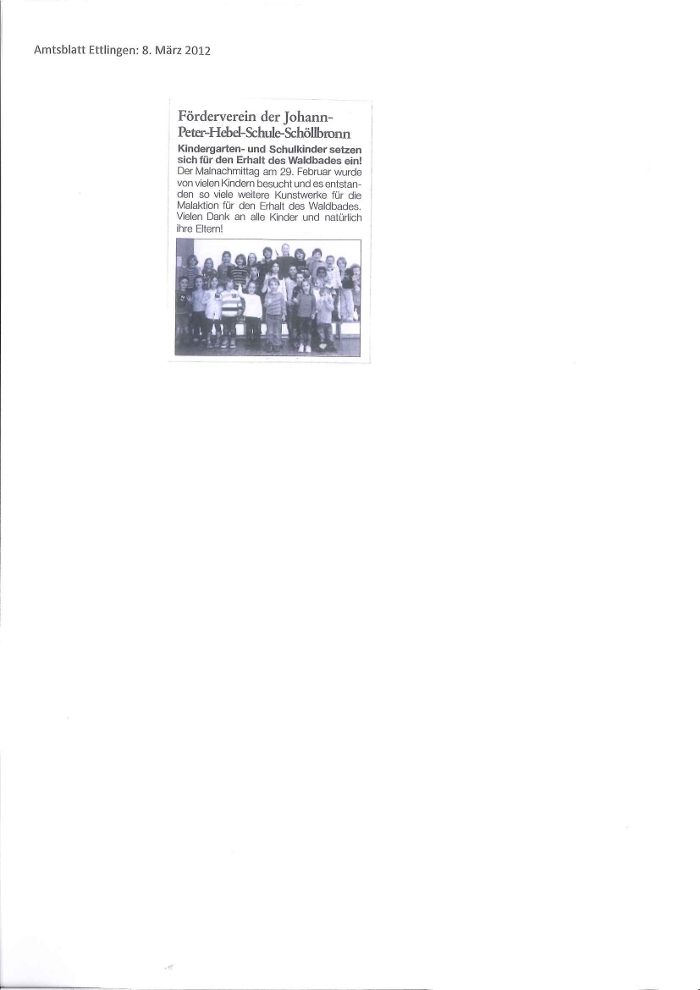 8. März 2012 Amtsblatt Ettlingen: Kindergarten- und Schulkinder setzen sich für den Erhalt des Waldbades ein!