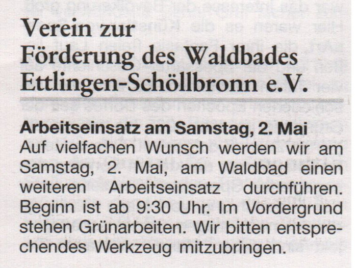 29. April 2015 Amtsblatt Ettlingen: Arbeitseinsatz am Samstag, 2. Mai