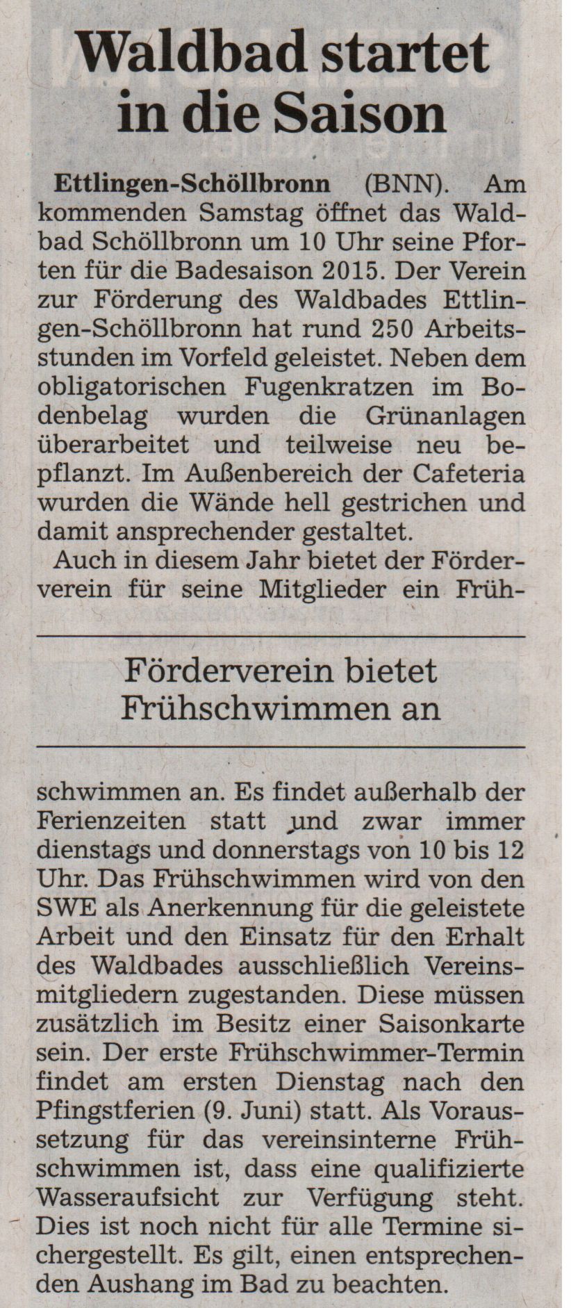 20. Mai 2015 BNN: Waldbad startet in die Saison