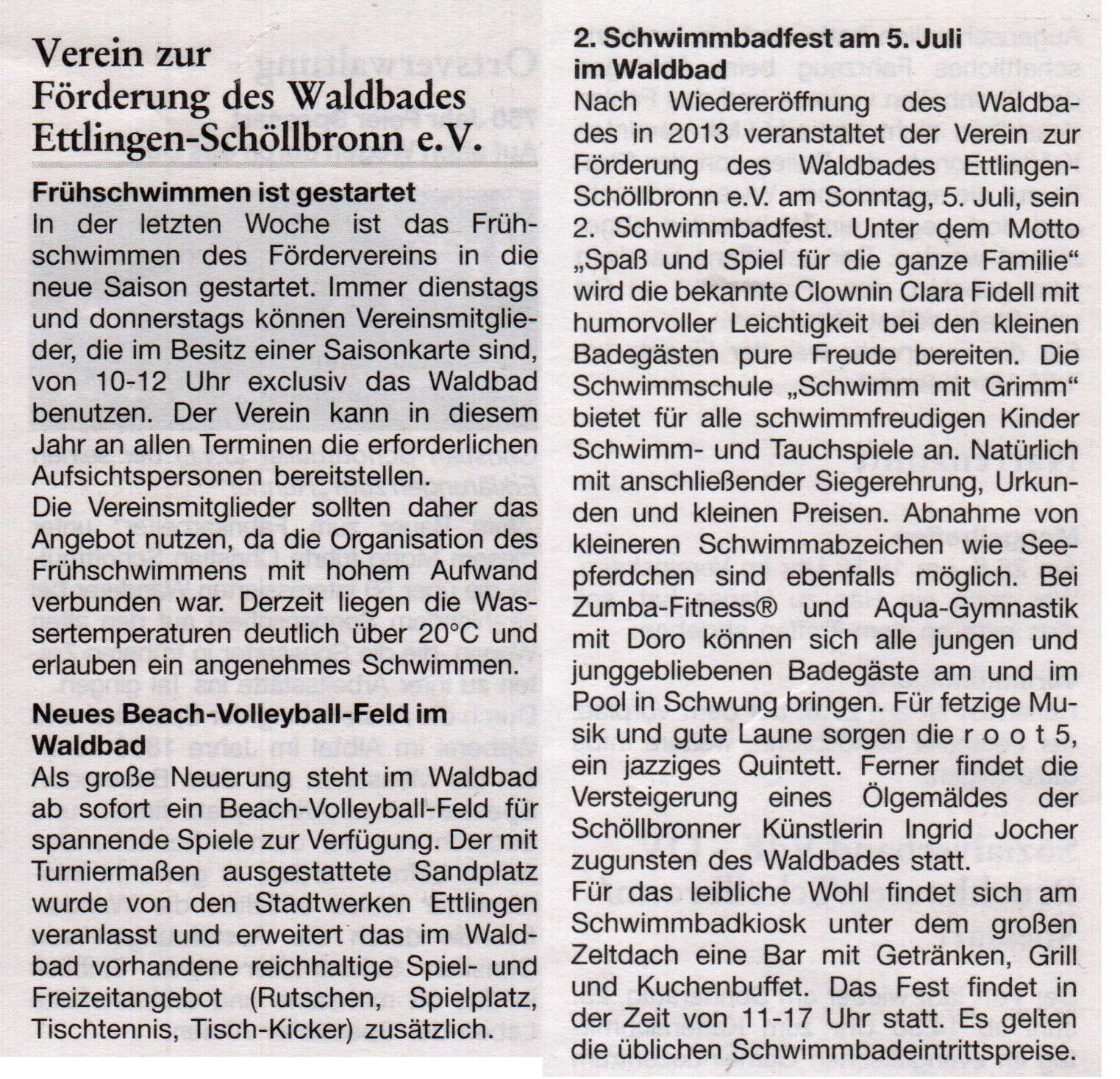 18. Juni 2015 Amtsblatt Ettlingen: Frühschwimmen gestartet / Neues Beach-Volleyball-Feld / 2. Schwimmbadfest