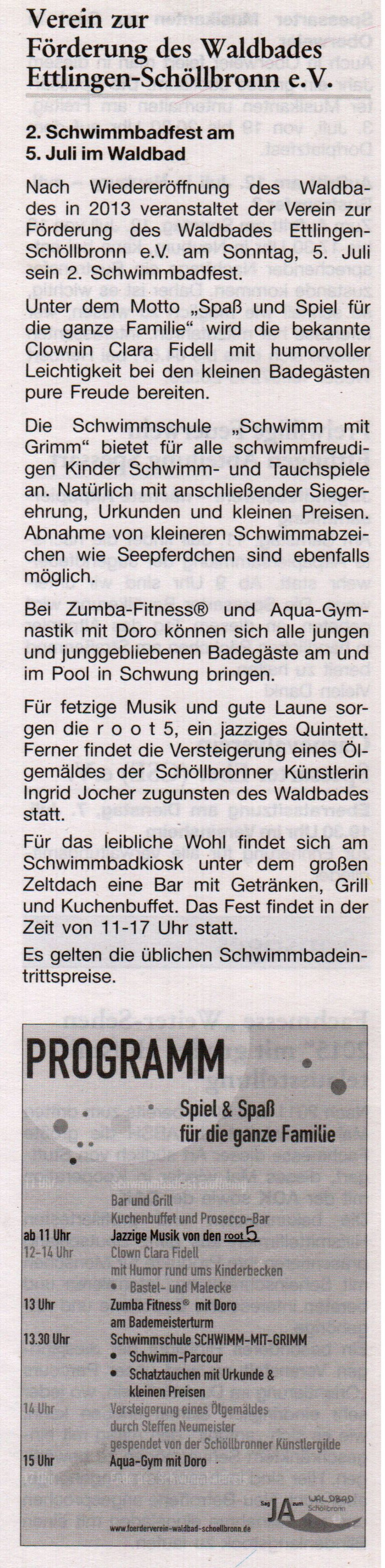 02. Juli 2015 Amtsblatt Ettlingen: 2. Schwimmbadfest am 5. Juli im Waldbad