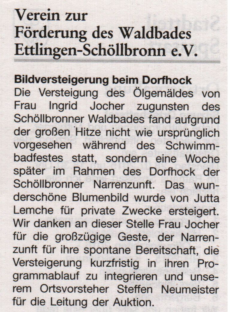 23. Juli 2015 Amtsblatt Ettlingen: Bildversteigerung beim Dorfhock
