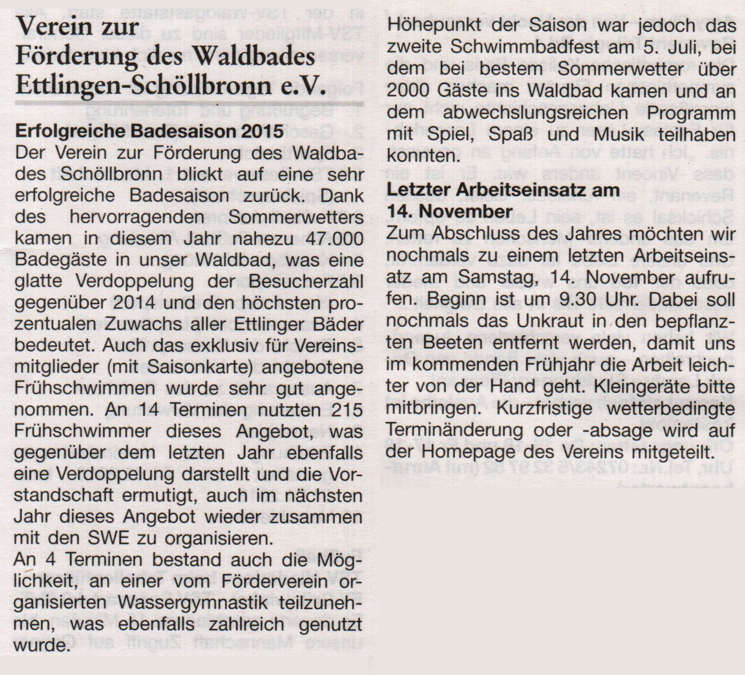 05. November 2015 Amtsblatt Ettlingen: Erfolgreiche Badesaison 2015 / Letzter Arbeitsdienst 2015 am 14. November