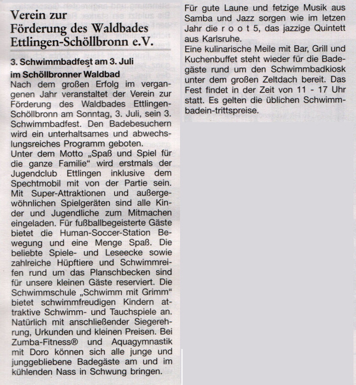Amtsblatt Ettlingen: 16. Juni 2016 3. Schwimmbadfest am 3. Juli im Schöllbronner Waldbad Originalgröße