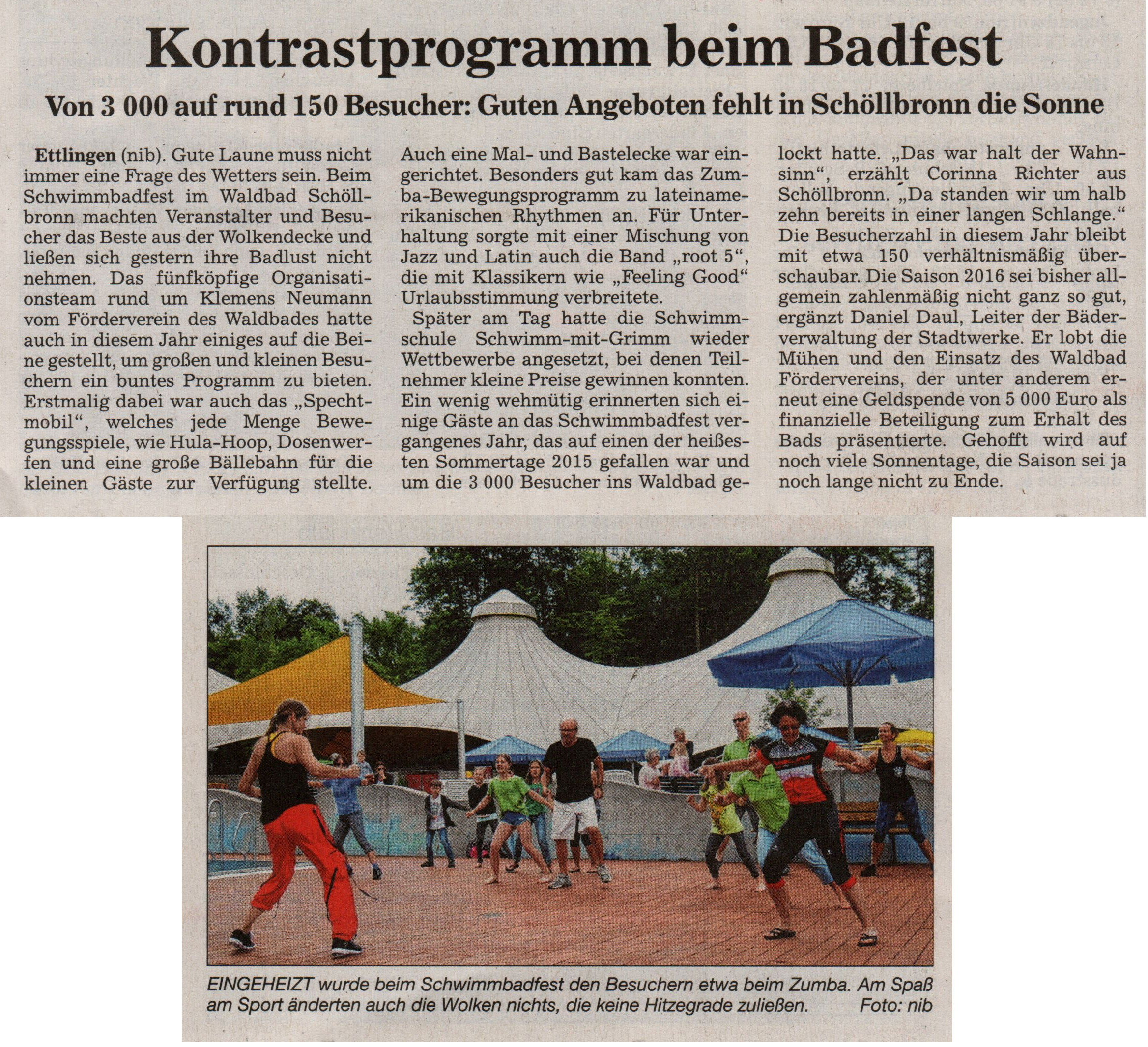 04. Juli 2016 BNN: Kontrastprogramm beim Badfest