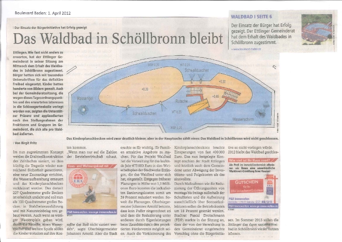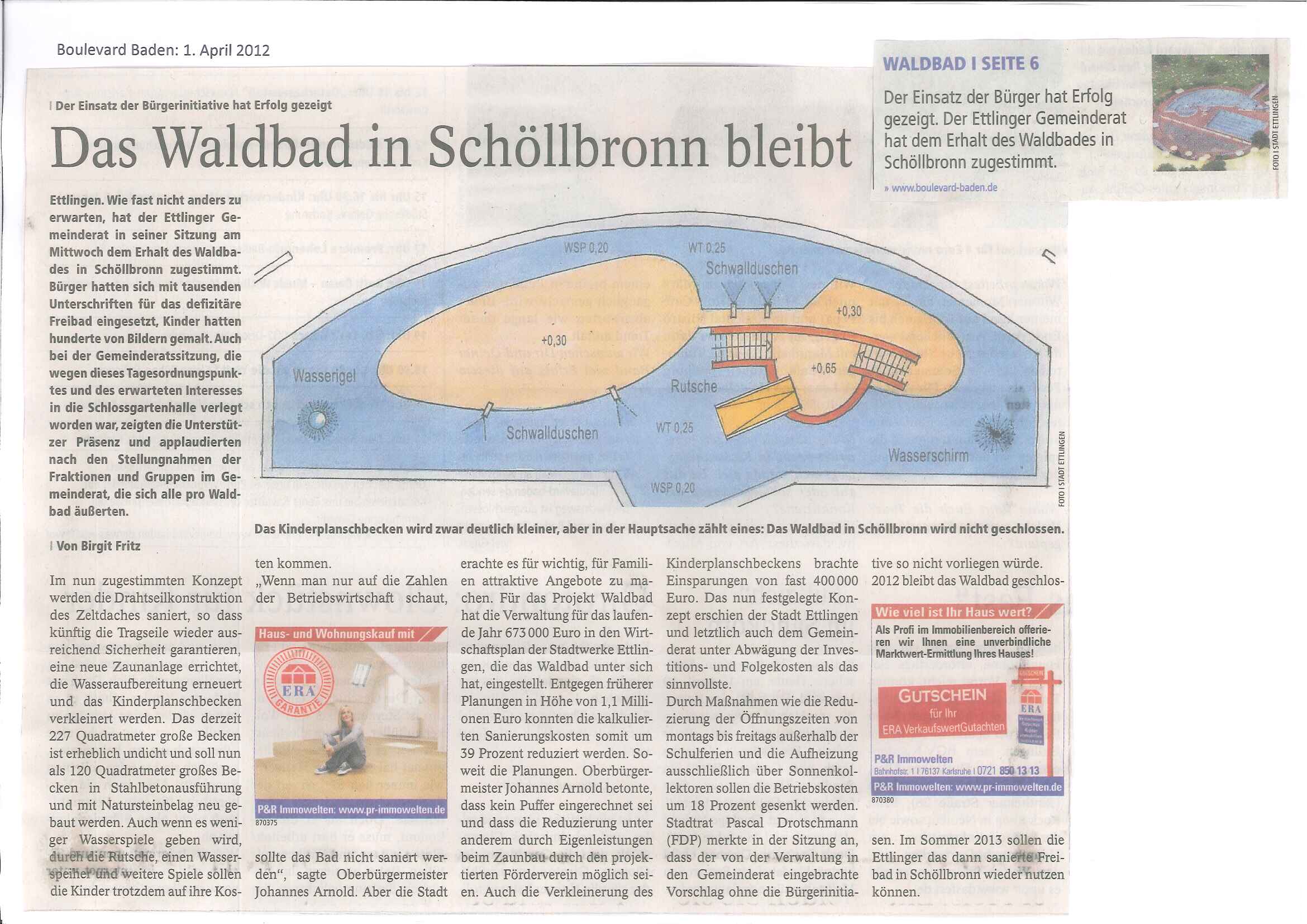 1. April 2012 Boulevard Baden: Das Waldbad in Schöllbronn bleibt