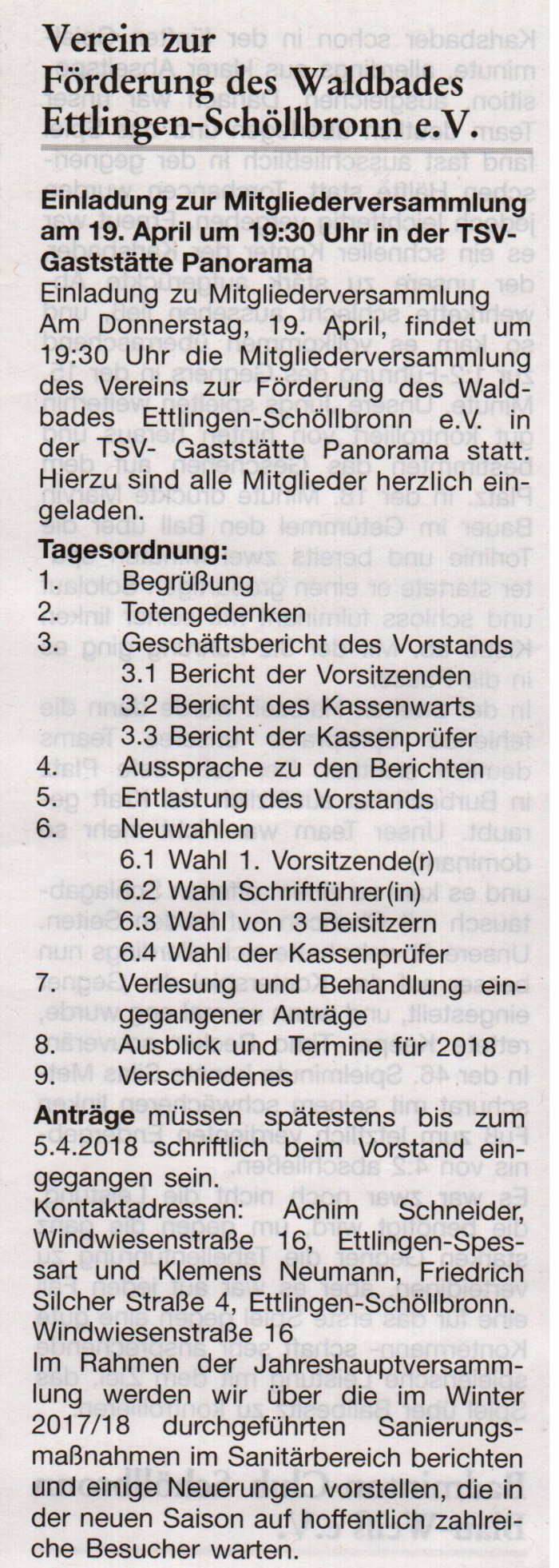 Amtsblatt Ettlingen: 28. März 2018Einladung zur Mitgliederversammlung am 19. April 2018 Originalgröße