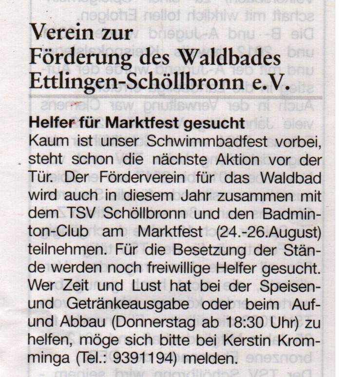 26. Juli 2018 Amtsblatt: Helfer für Marktfest gesucht