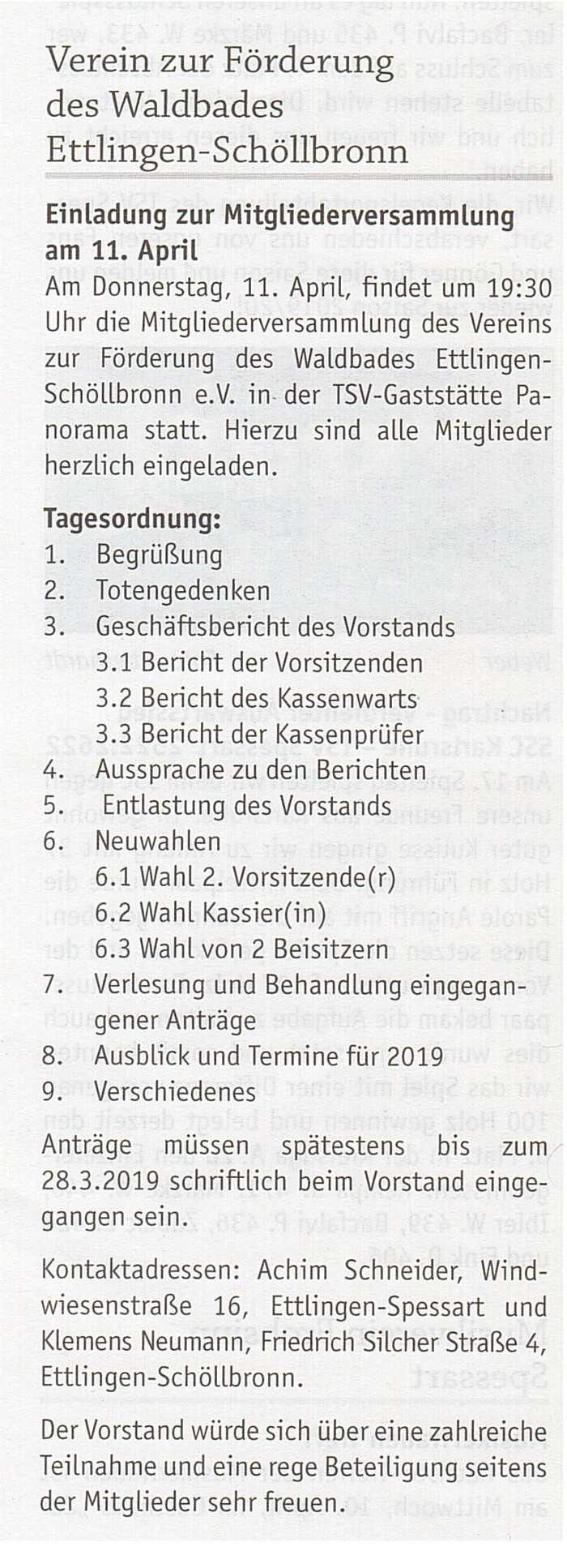 21. März 2019 Amtsblatt: Einladung zur Mitgliederversammlung am 11. April