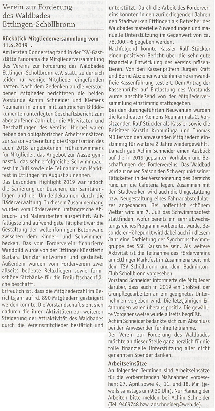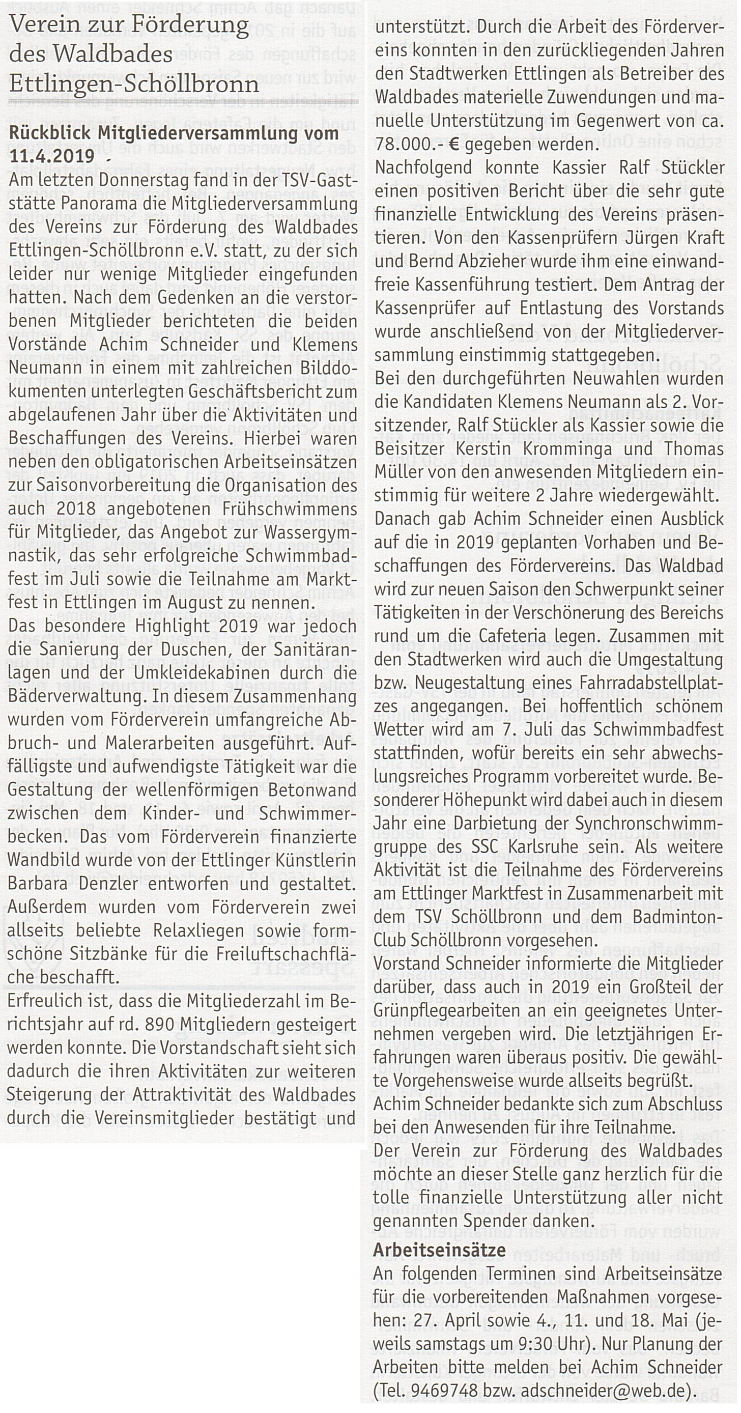 17. April 2019 Amtsblatt: Rückblick Mitgliederversammlung vom 11.04.2019