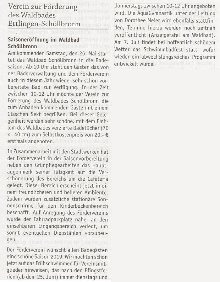 23. Mai 2019 Amtsblatt: Saisoneröffnung im Waldbad Schöllbronn