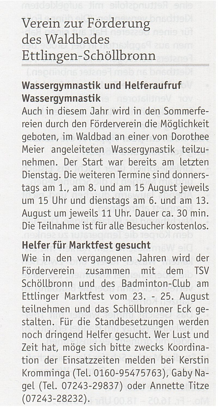 01. August 2019 Amtsblatt: Wassergymnastik und Helferaufruf