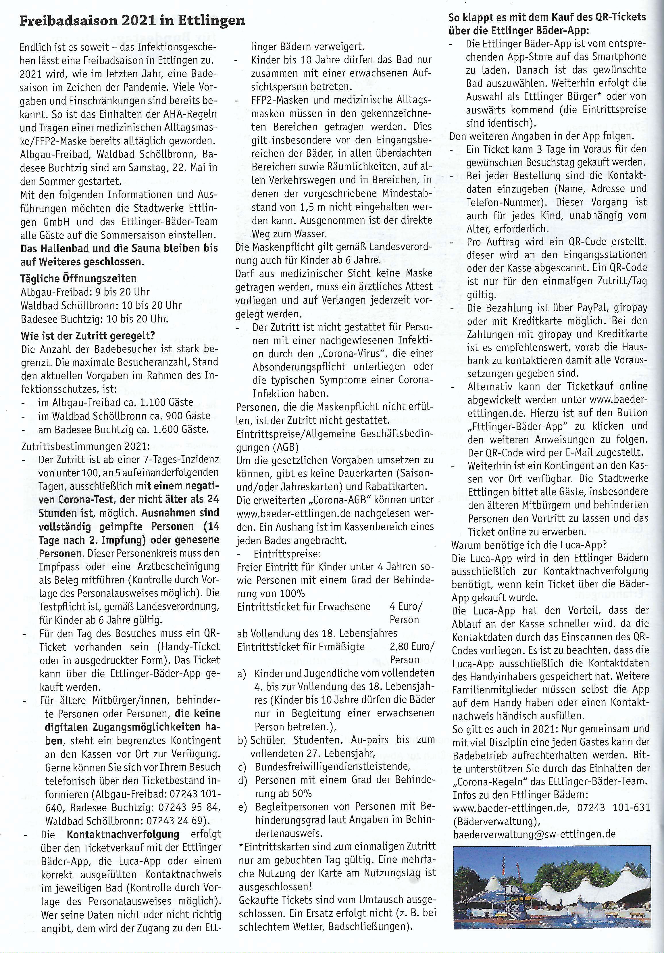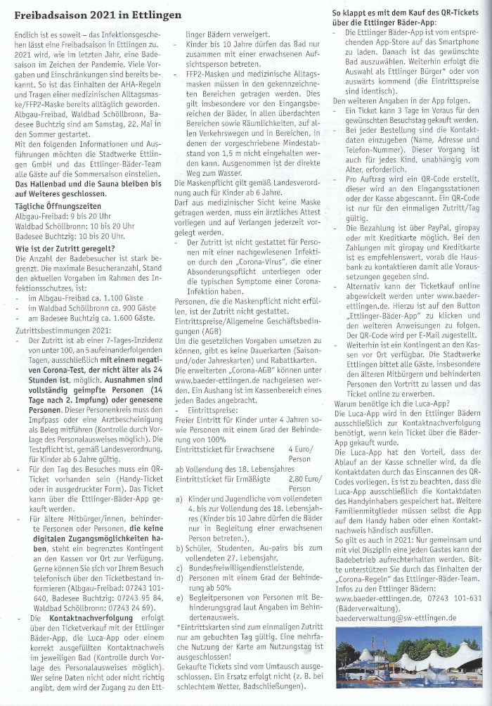 27. Mai 2021 Amtsblatt: Freibadsaison 2021 in Ettlingen