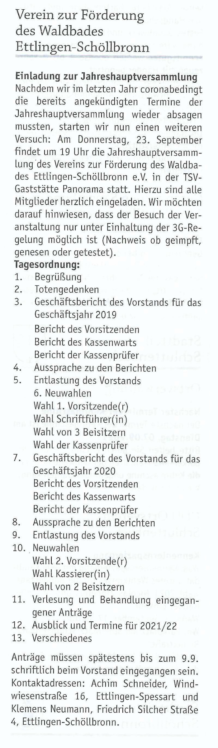 02. September 2021 Amtsblatt: Einladung zur Jahreshauptversammlung