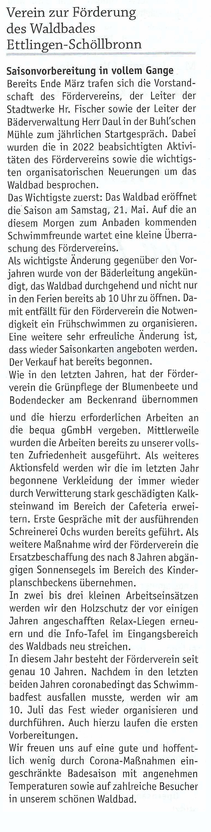 05. Mai 2022 Amtsblatt: Saisonvorbereitung in vollem Gange