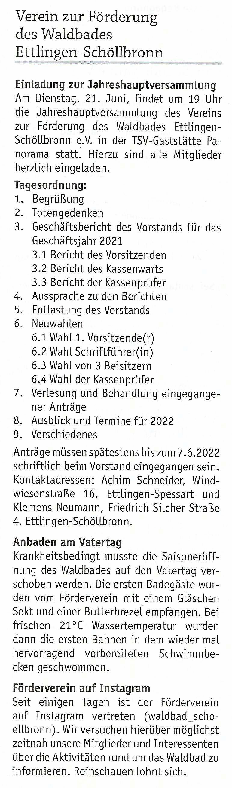 02. Juni 2022 Amtsblatt: Einladung zur Jahreshauptversammlung