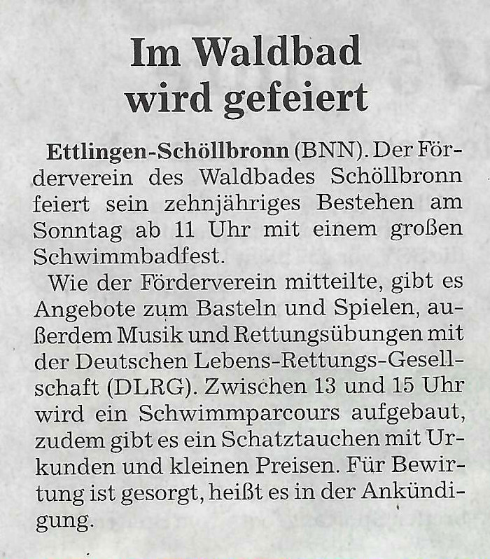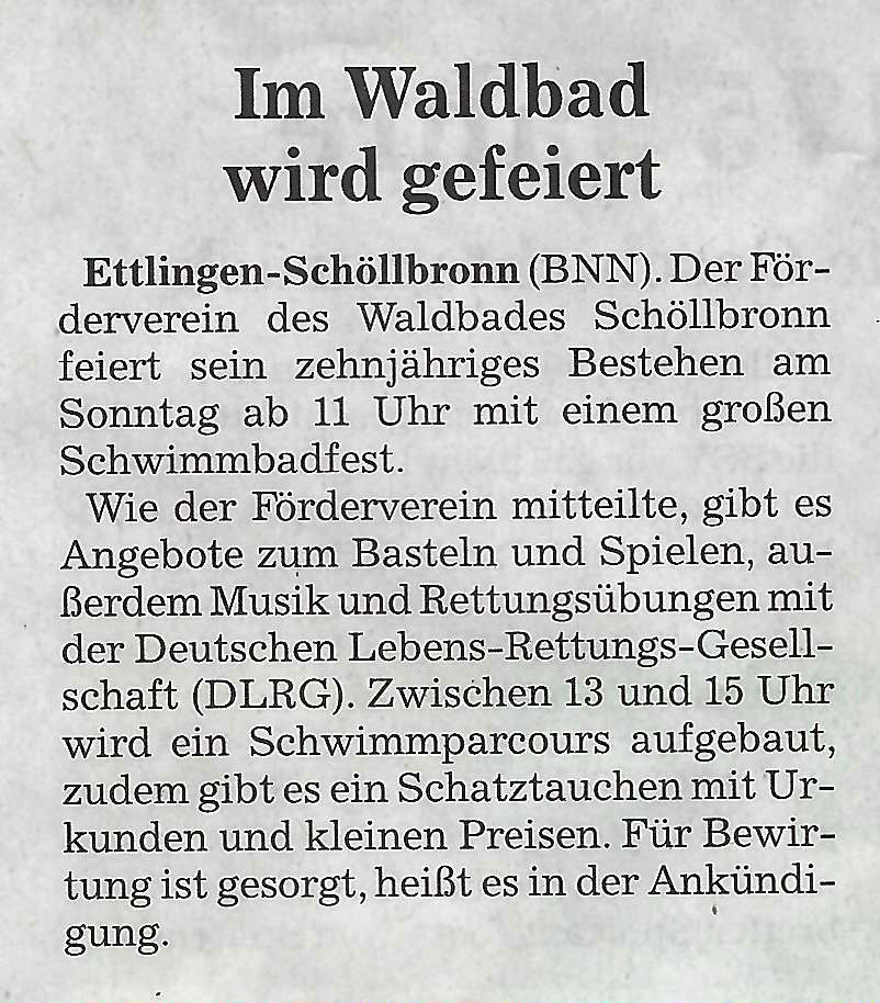 07. Juli 2022 BNN: Im Waldbad wird gefeiert