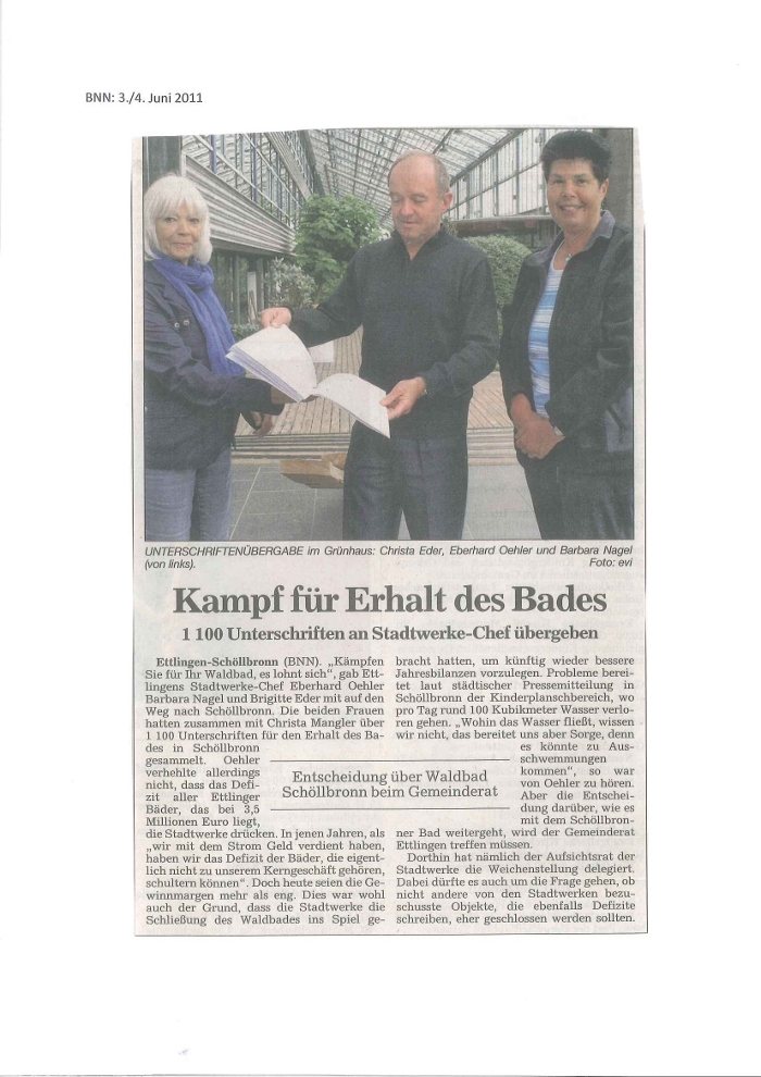 3./4. Juni 2011 BNN: Kampf für Erhalt des Bades