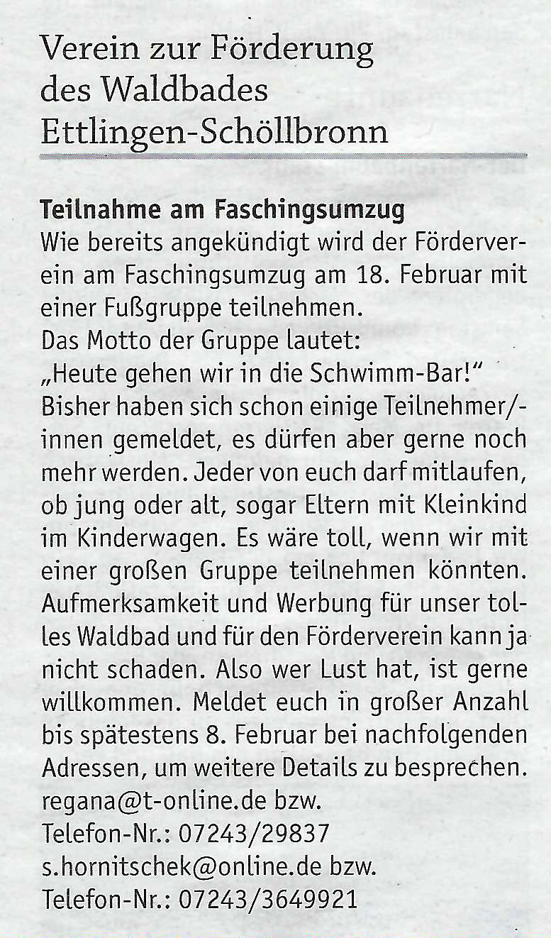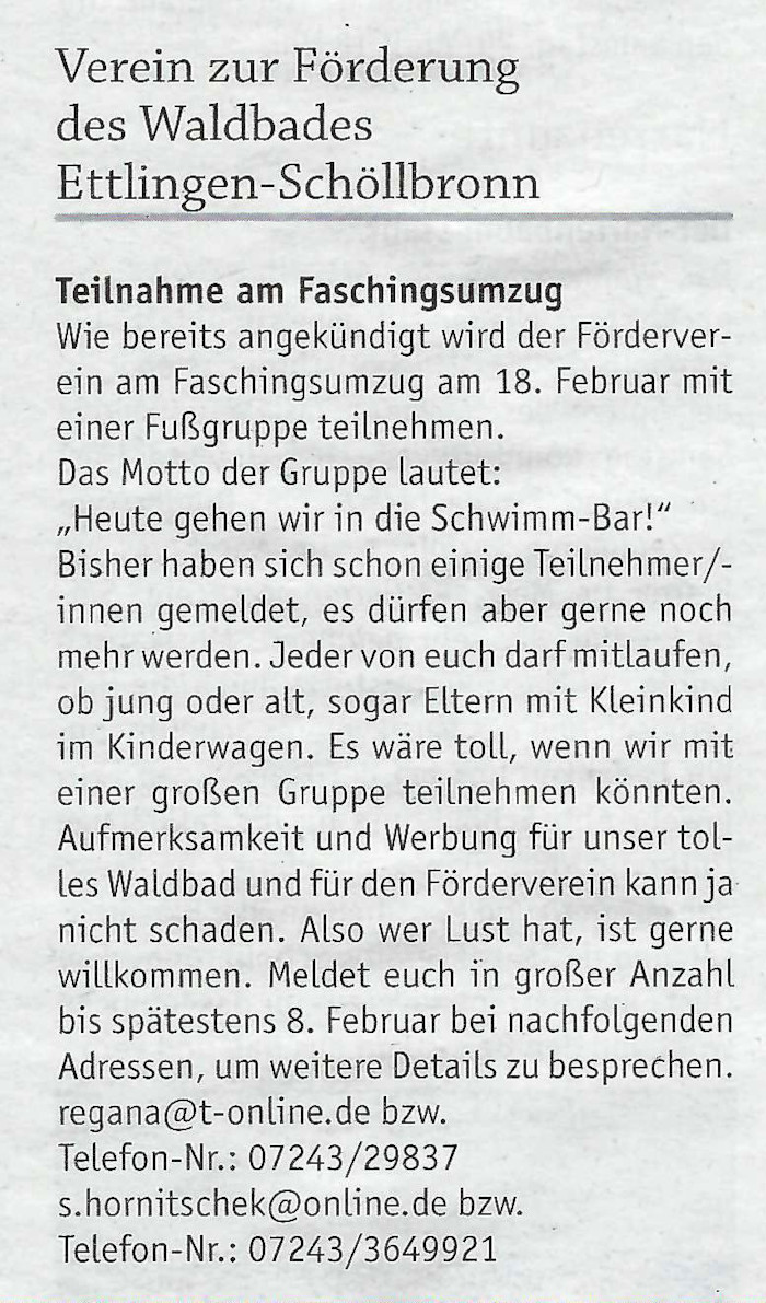 02. Februar 2023 Amtsblatt: Teilnahme am Fastnachtsumzug