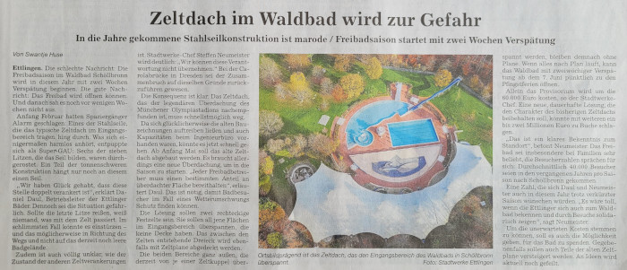 05. April 2025 BNN: Zeltdach im Waldbad wird zur Gefahr