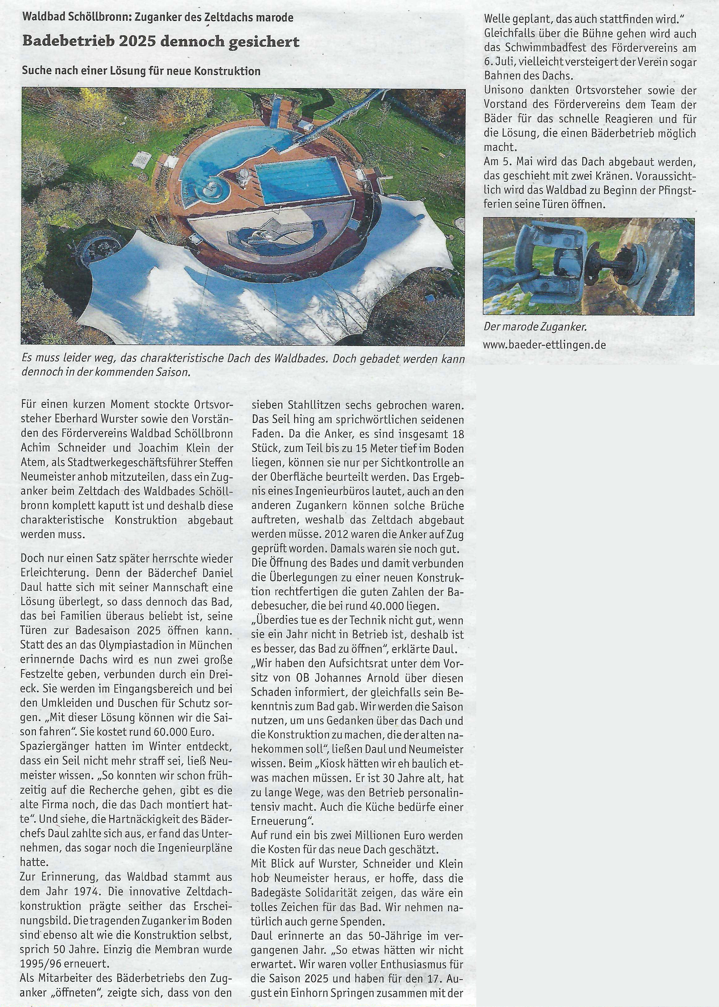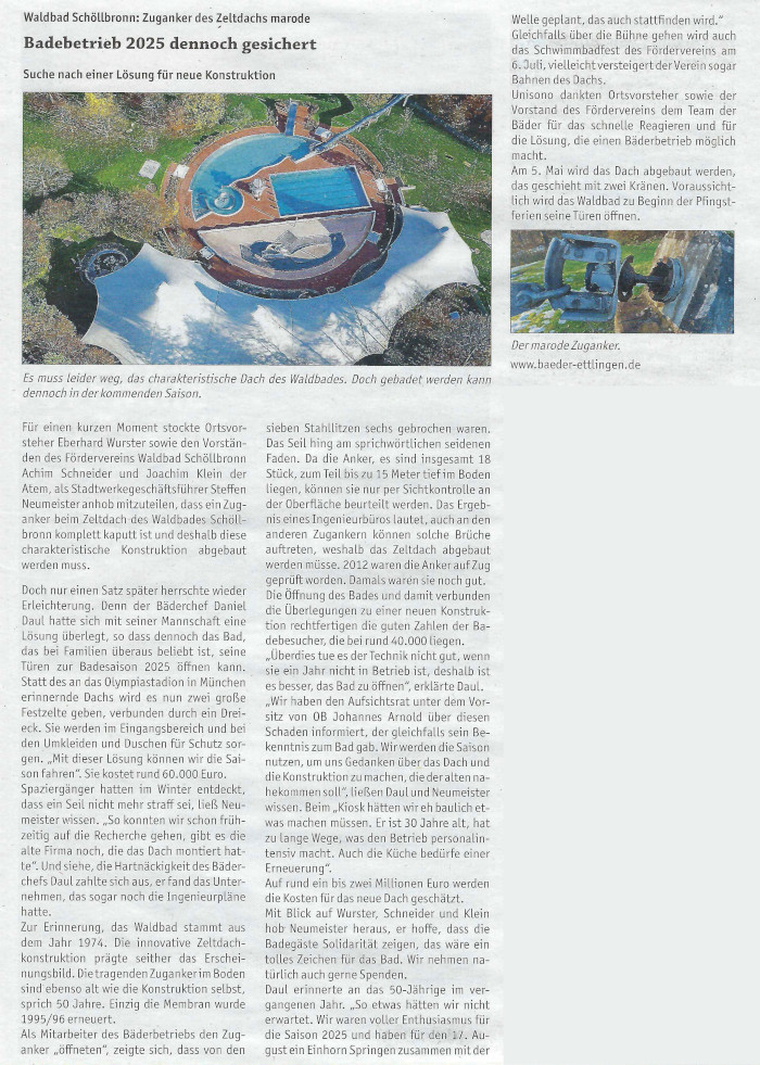 Zuganker des Zeltdachs marode / Badebetrieb 2025 dennoch gesichert