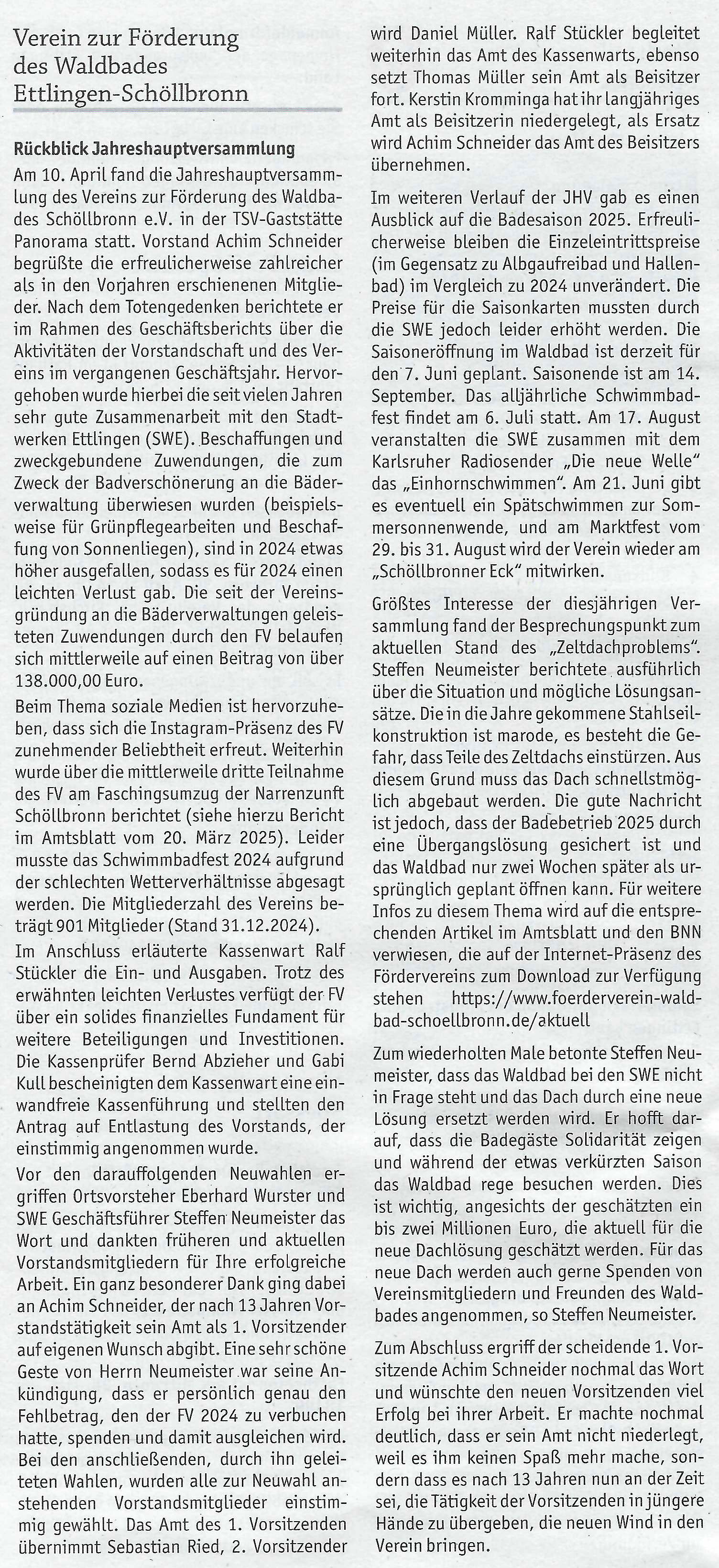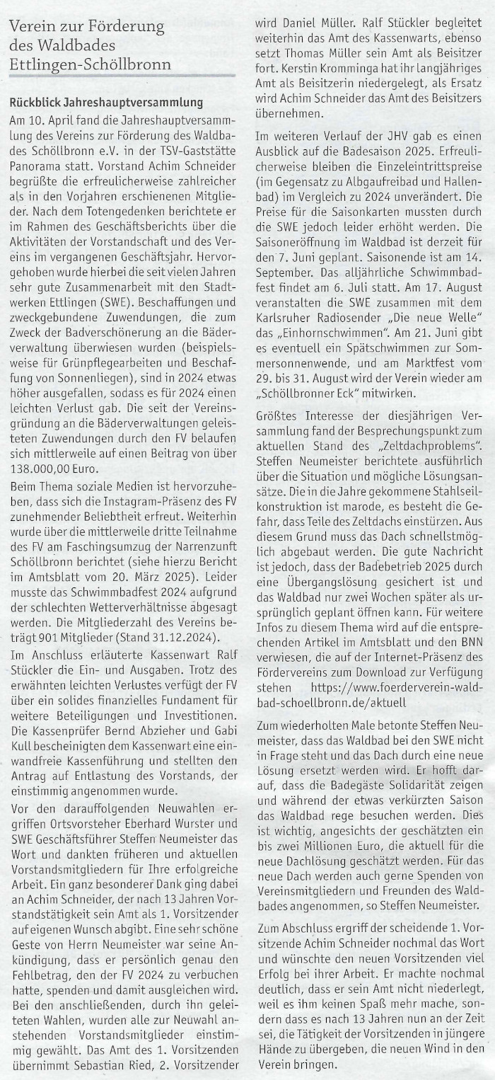 24. April 2025 Amtsblatt: Rückblick Jahreshauptversammlung