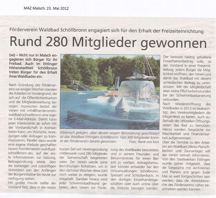 23. Mai 2012 MAZ Malsch: Rund 280 Mitglieder gewonnen