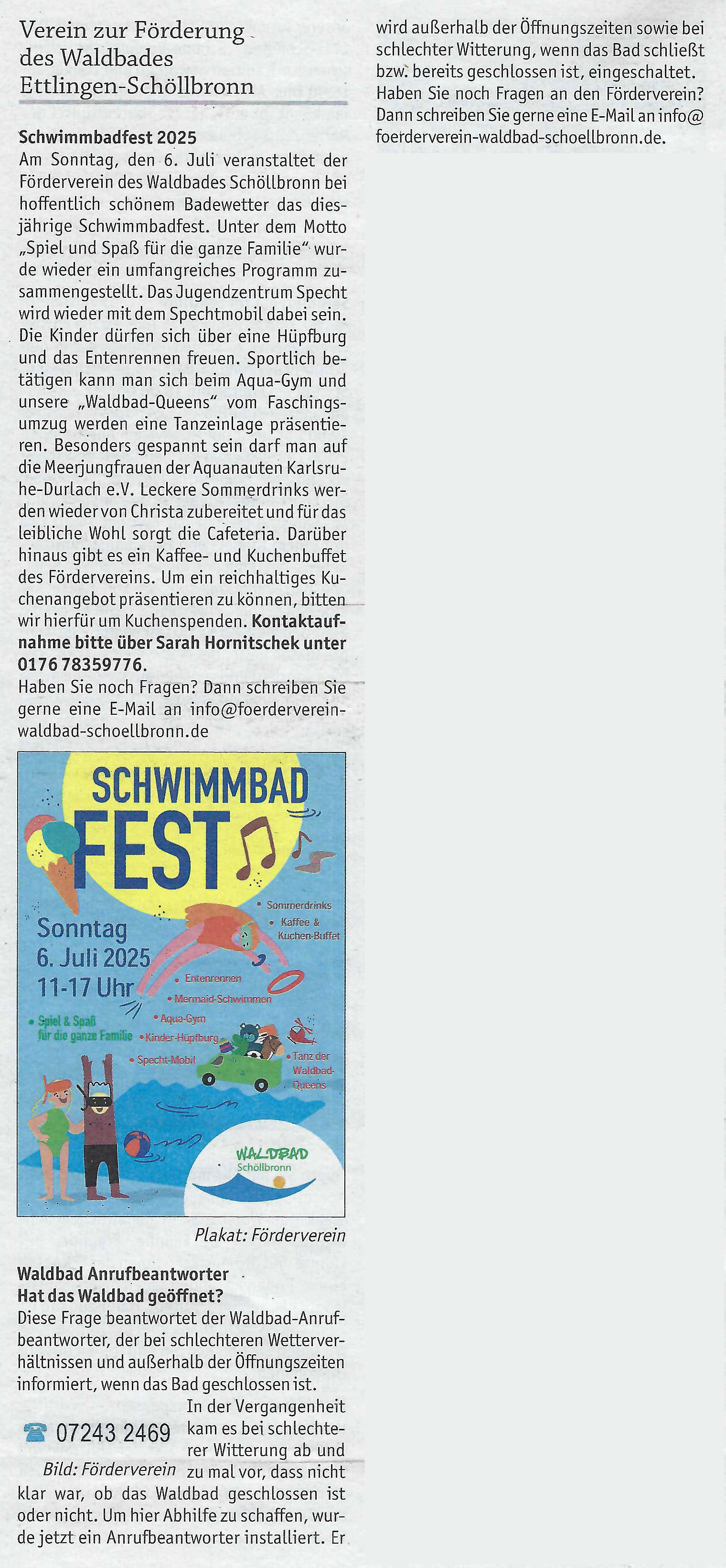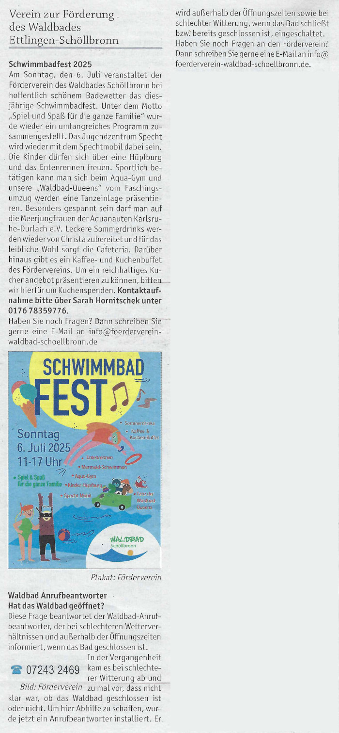 Schwimmbadfest 2025 / Waldbad Anrufbeantworter