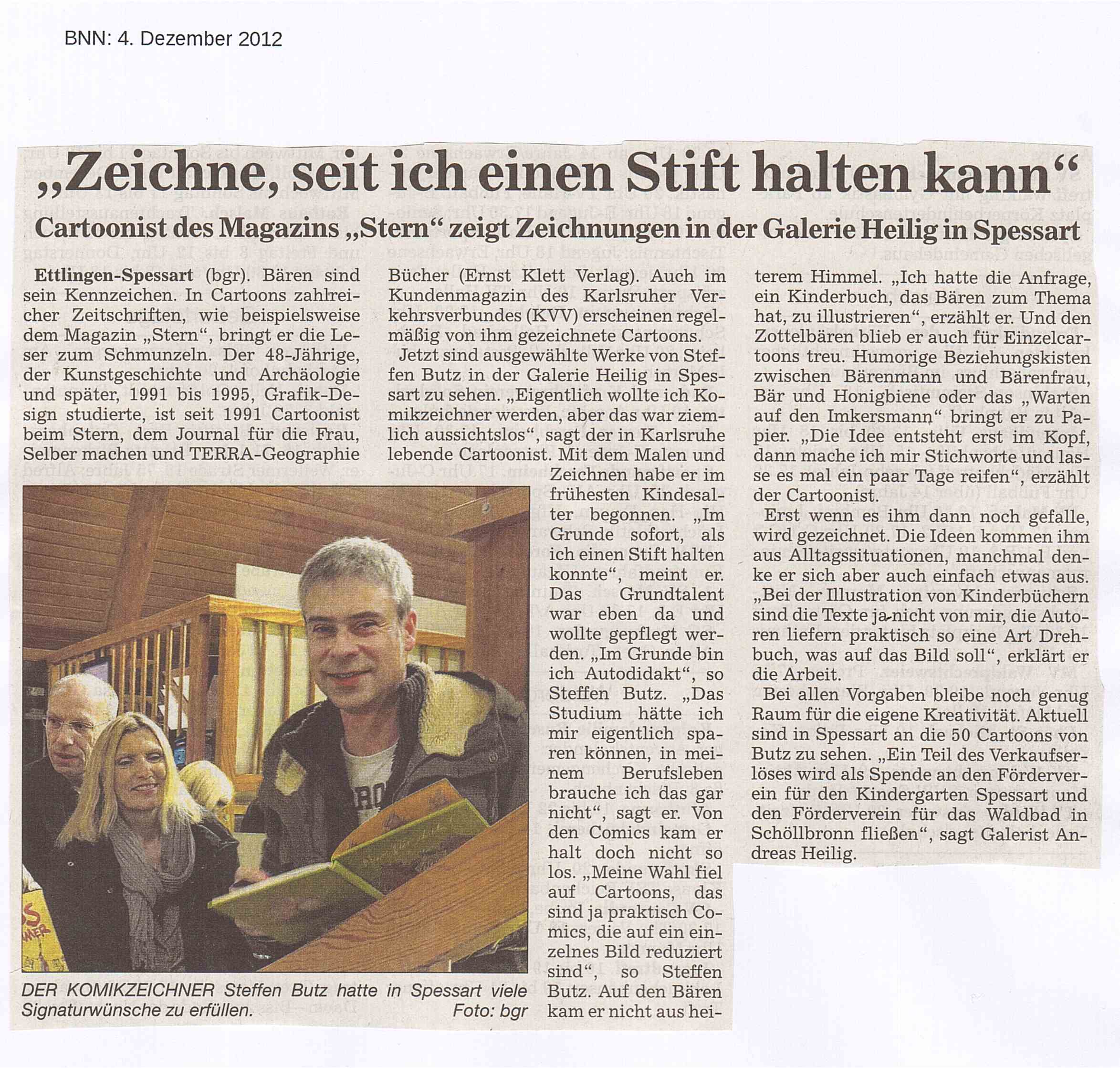 4. Dezember 2012 BNN: "Zeichne, seit ich einen Stift halten kann"